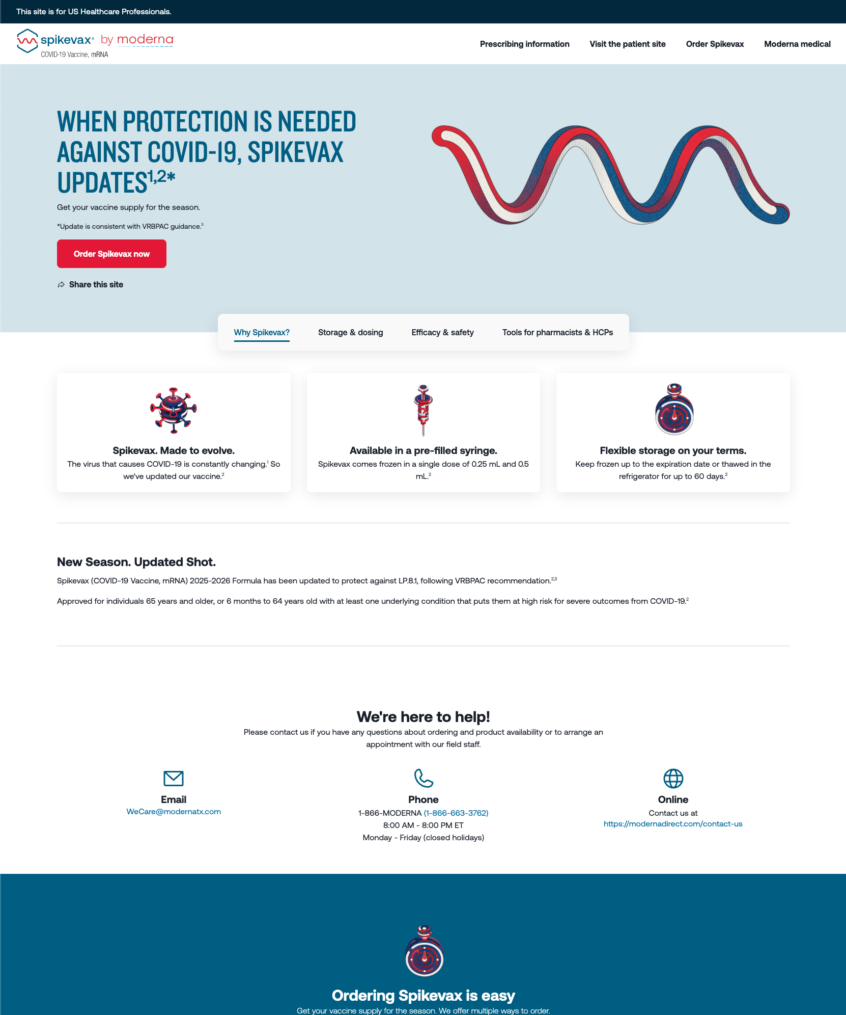 I partnered with our UX researcher to run a UserTesting.com study. We A/B tested the new Spikevax site built on my template against the legacy site; clarity scores jumped and participants unanimously preferred the new experience. Second, we ran module-level usability tests on complex content. For example, for “Storage and handling,” we explored alternate presentations to identify the most understandable pattern before rollout.